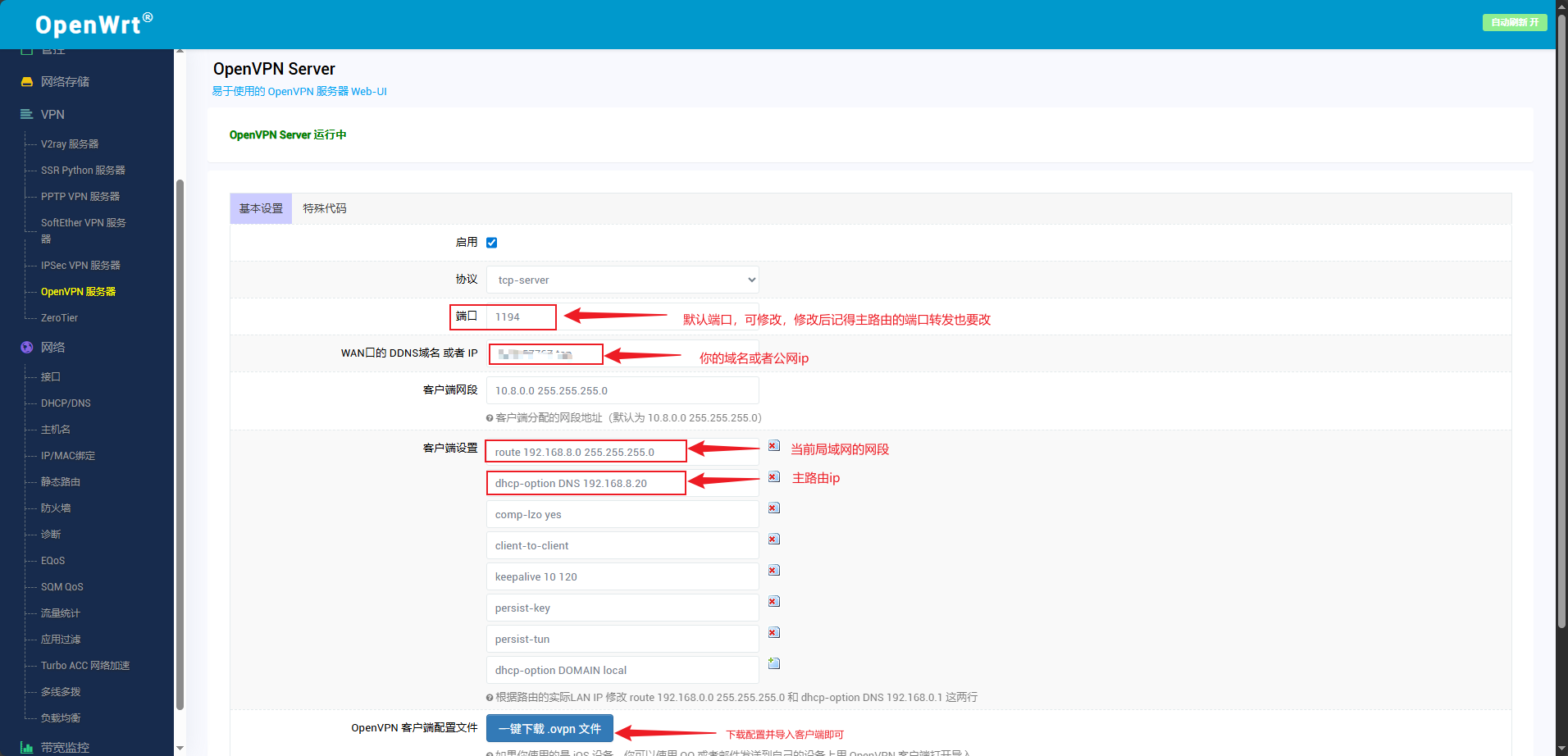 AI摘要:本文介绍了在OpenWrt旁路由上配置OpenVPN服务的步骤,包括安装OpenWrt固件、开启OpenVPN服务、主路由端口转发和路由表配置,以实现稳定连接。